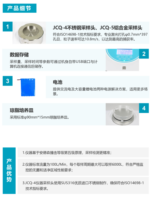 浮游菌采样器是一种高效的多孔吸入式采样器,它基于安德森撞击等级第五级原理,撞击速率在10.8m/S。仪器的吸气装置通过多孔采样头,直接把微生物颗粒通过微孔吸入撞击到琼脂板上。采集完成后把琼脂培养皿盖好,进行菌落培养和菌落计算。内部安装有一个高效的吸气装置,可以连续抽气监测。该系统测量空气和调节流入吸气量保持100L/Mint5%。确保微生物撞击速率保持在 10.8m/s 左右,以达到最高的捕获率。